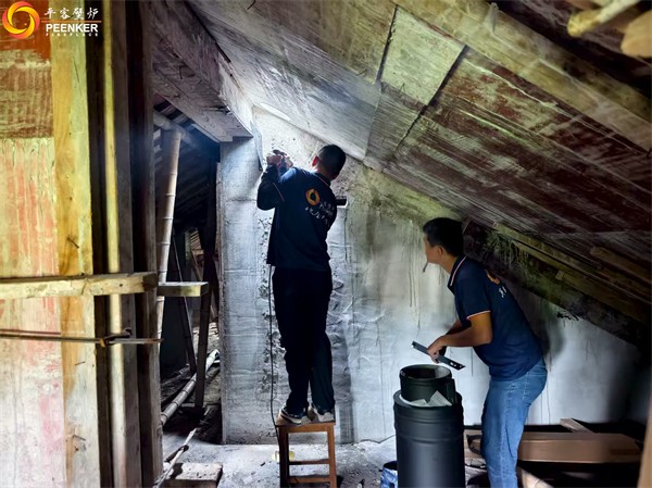 項目情況:該項目為自建獨棟別墅,位于安徽省池州市九華山,壁爐安裝在客廳,煙囪穿閣樓斜頂出戶外,由平客壁爐項目部帶隊上門安裝。