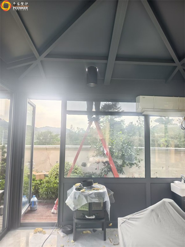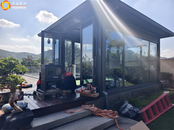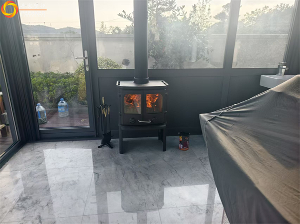 項目情況:該項目位于鎮江紫金7號別墅,壁爐安裝在庭院陽光房中,因壁爐煙囪垂直高度達不到5米要求,戶外使用壁爐風機解決抽力問題。由平客壁爐項目部帶隊上門安裝。