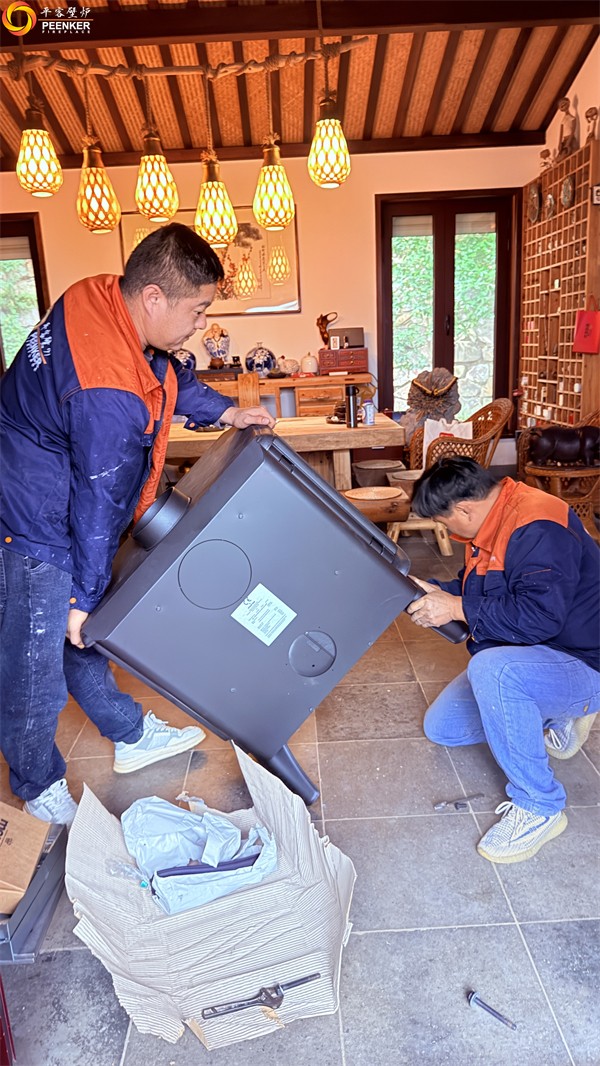 項(xiàng)目情況:該項(xiàng)目位于鎮(zhèn)江寶華,項(xiàng)目已入駐,壁爐安裝在茶室中,業(yè)主不想戶外看見煙囪,所以使用壁爐風(fēng)機(jī)代替?zhèn)鹘y(tǒng)不銹鋼煙囪,解決抽力問題。由平客壁爐項(xiàng)目部帶隊(duì)上門安裝。