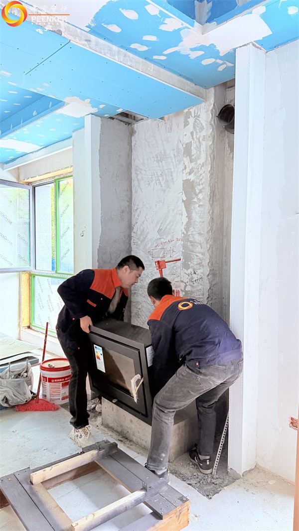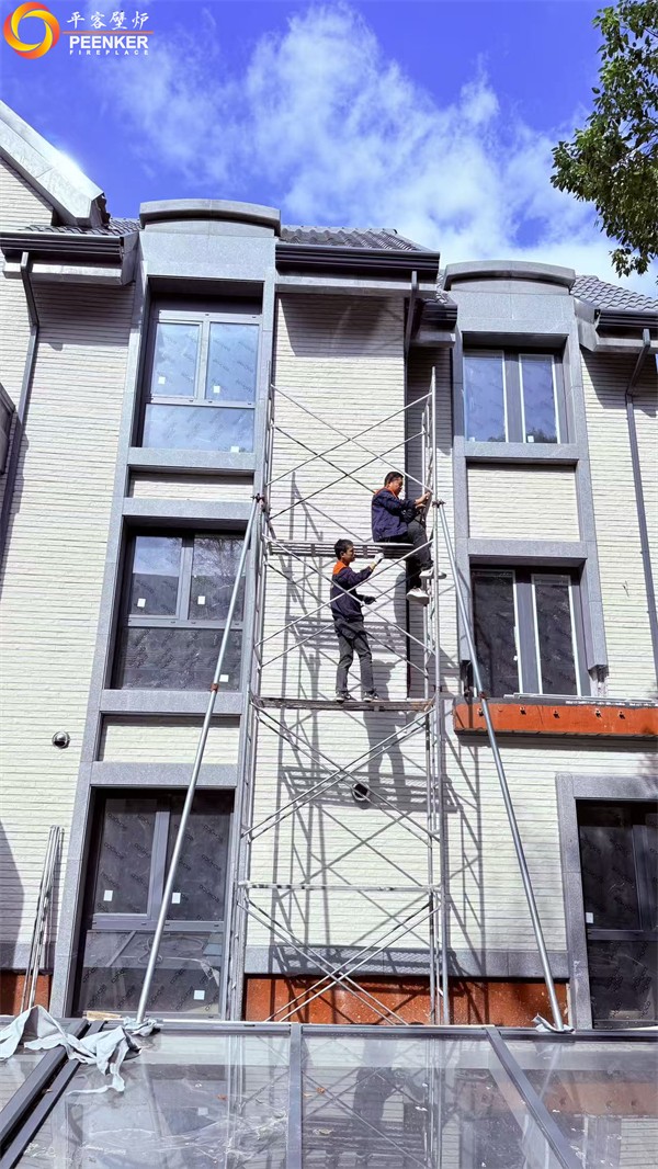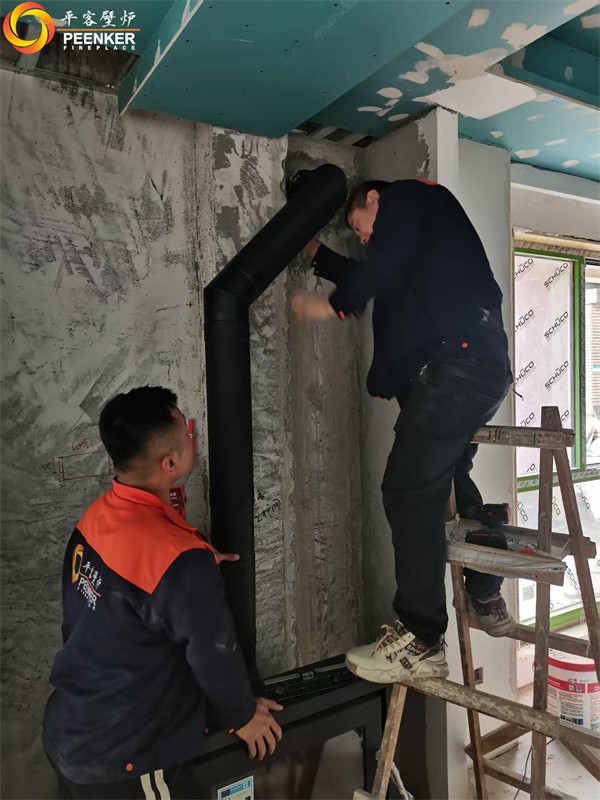項目情況:該項目位于江蘇蘇州太湖檀宮二期別墅區,壁爐安裝在客廳位置,煙囪穿側墻到戶外加高過屋檐。由平客壁爐項目部帶隊上門安裝。